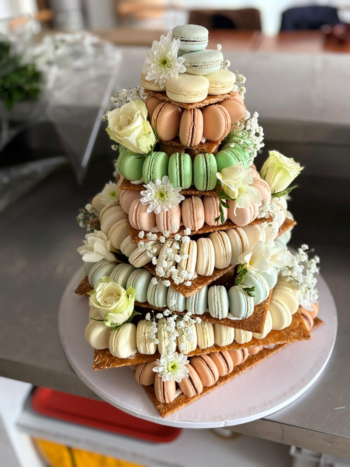 Notre gamme : entremets, brownies, banana bread, gâteaux d'anniversaire, wedding cakes, macarons, financiers...